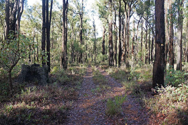 As I mentioned in the previously day's post, I totally understand the reasoning behind control burns and that they are something of a necessary evil, however one aspect of the control burns that really angers me is how it often results in mature trees either collapsing or being pulled down due to burnt out roots or the fire damage causing the tree to be structurally unsound. Due to logging, there are so few tall trees in the Jarrah forest that when one falls its almost irreplaceable. While the control burns help prevent the forest from being totally wiped out by massive disastrous fires, it feel sometimes like the continuous control burns cycle kills a handful of tall trees at each burn and it will be a good part of a century before the thin scrappy Jarrah that predominates will grow tall enough to take their place. Seeing recently fallen tall trees filled me with a feeling of inescapable frustration that some of these sections of the Bibbulmun may never get the chance to become the truly beautiful forest that once stood before European settlement, and that runaway climate change is only going to make things even worse.