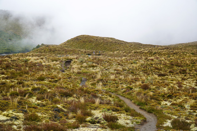 Finishing up the Abel Tasman Coast Track and flying back to Auckland to collect our road tripping hire car, Alissa and I had a brief sojourn in Taupo before commencing our second Great Walk - the Tongariro Northern Circuit. Due to Lord of the Rings fandom, this was the New Zealand Great Walk I'd wanted to do the most, with plans to do it going as far as when we finished the Overland Track in 2016. With somewhat lousy weather and terrible visibility, Alissa and I drove up to the start of the track at Whakapapa Village, got our parking permit from the visitor centre and made our way to the trailhead located behind the grand, Wes Andersonesque Chateau Tongariro. Lacking in the major statement archway at the start and end of the Abel Tasman, the trailhead for the Tongariro Northern Circuit is a more humble affair, initially following the same route as the Taranaki Falls Track.